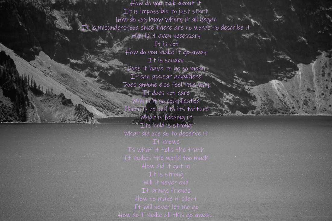 “Depression is really hard to talk about and describe. It is not being sad. Sad is a feeling that is temporary, it eventually ends. You may remember a time you were sad and feel it a little more. Depression is another level in the sense that is a different feeling. Depression is draining, like it is sucking the life force out of you but you never die. I just don’t want to do anything when I am depressed. Getting around is a drag. It is like my feet are encased in cement and I am carrying sandbags on my shoulders. Everything sucks when I am depressed, I hate everything. Hell, even eating can suck which is a lot coming from someone that clearly likes to eat. When I am depressed I want to hide away and leave the world outside my bedroom door. I want to block out everything. Once I can block it out I move on to quieting what is happening inside me. With the depression comes anxiety. The anxiety creeps in and takes a seat next to depression. Between the two of them I am a wreck fest. They tell me so many things: I am not good enough for anyone, I am disgusting, I don’t have any real friends or else they would reach out, I am not deserving of anyone’s attention or affection, I should just give up on life and die, me being gone would benefit everyone, I am just a burden to my family. When I am depressed all of this is true to me, I take it all in and hate myself because of it. It seems irrational to believe these things especially if you see me out with friends or spending time with my family. Sometimes the mask I wear gets too heavy and the reality that I am not OK becomes obvious to those around me. This happens the most around my friends and I think it is because somewhere inside I know that is OK for them to see. For my family I can’t let them see it, it would hurt them. I have put them through so much in the past when it comes to my mental health and addiction. Plus I hate the are you feeling/doing OK questions from my family because I always answer that I am, which over half the time is a lie.